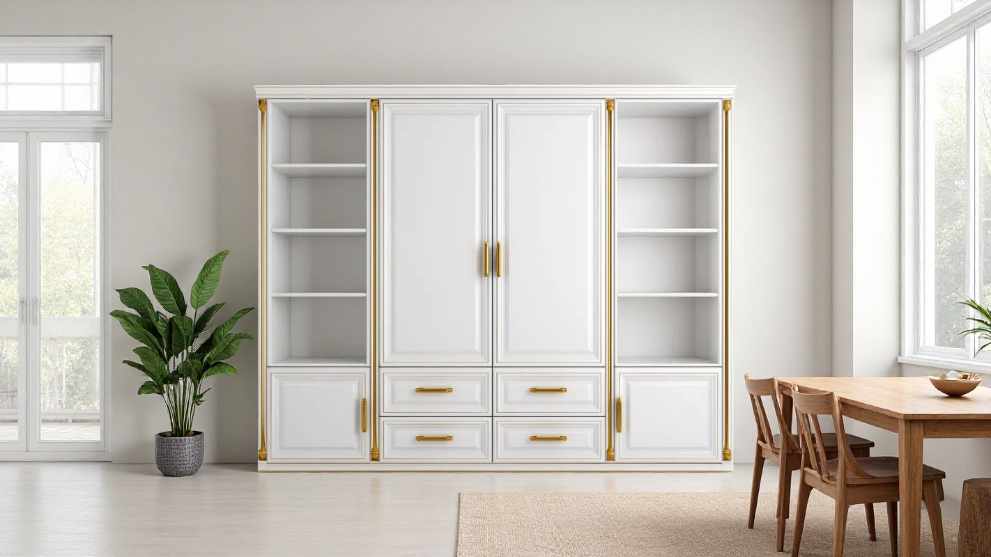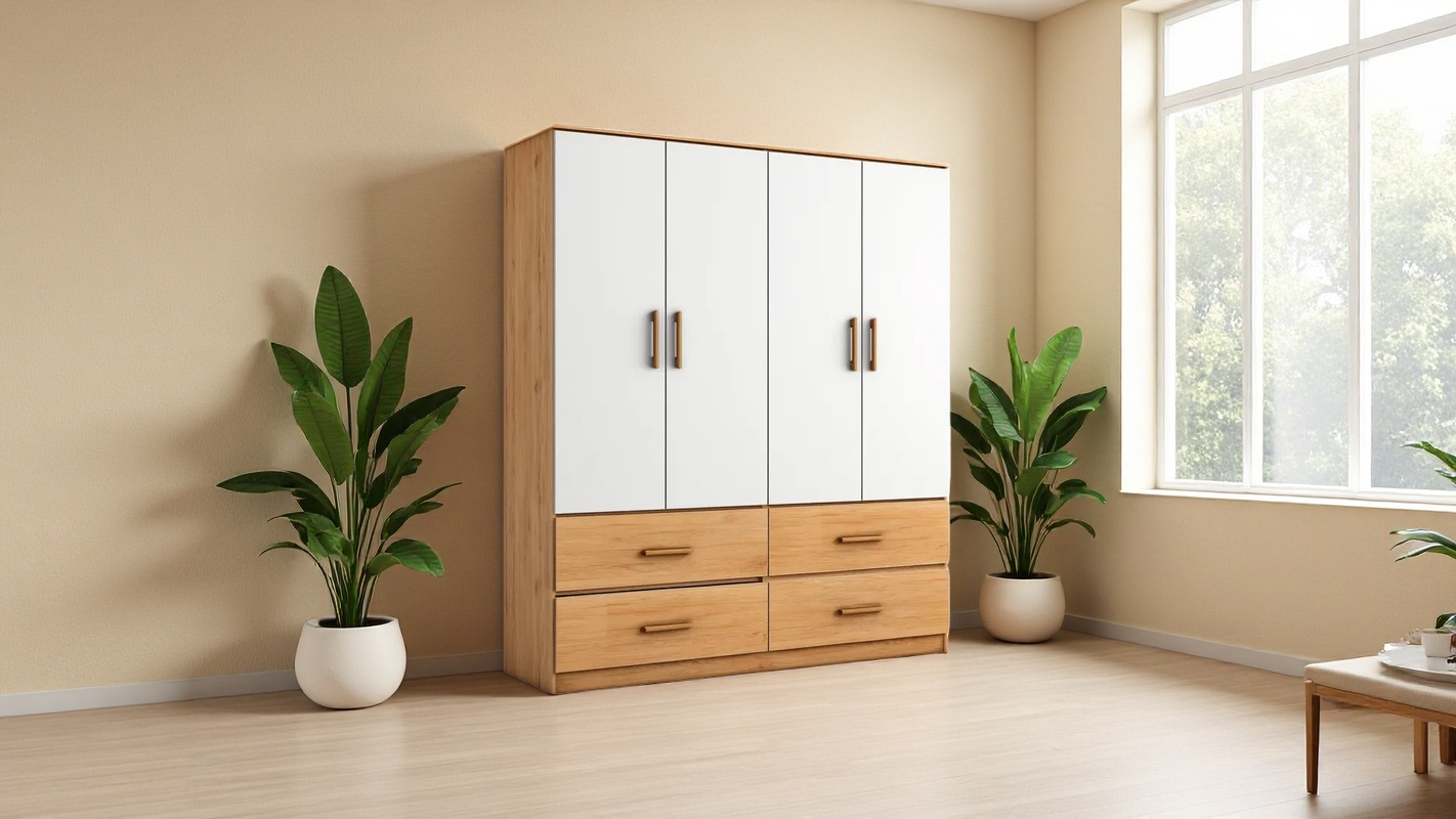 Wardrobe contemporary design 160x60x200 cm - white oak - modern bedroom storage